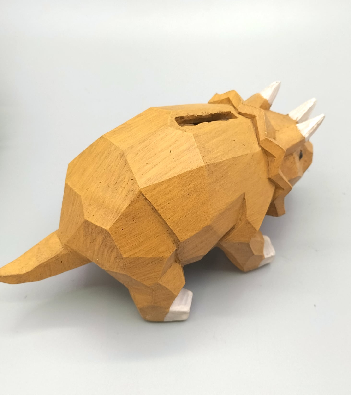 北欧デザインのトリケラトプス貯金箱は、ユニークさと魅力が詰まったアイテムです。温かみのある木彫り風仕上げが、どんなインテリアにもぴったりマッチし、お部屋に癒しの雰囲気を加えます。愛らしい表情と存在感が、見る人の心をつかむことでしょう!