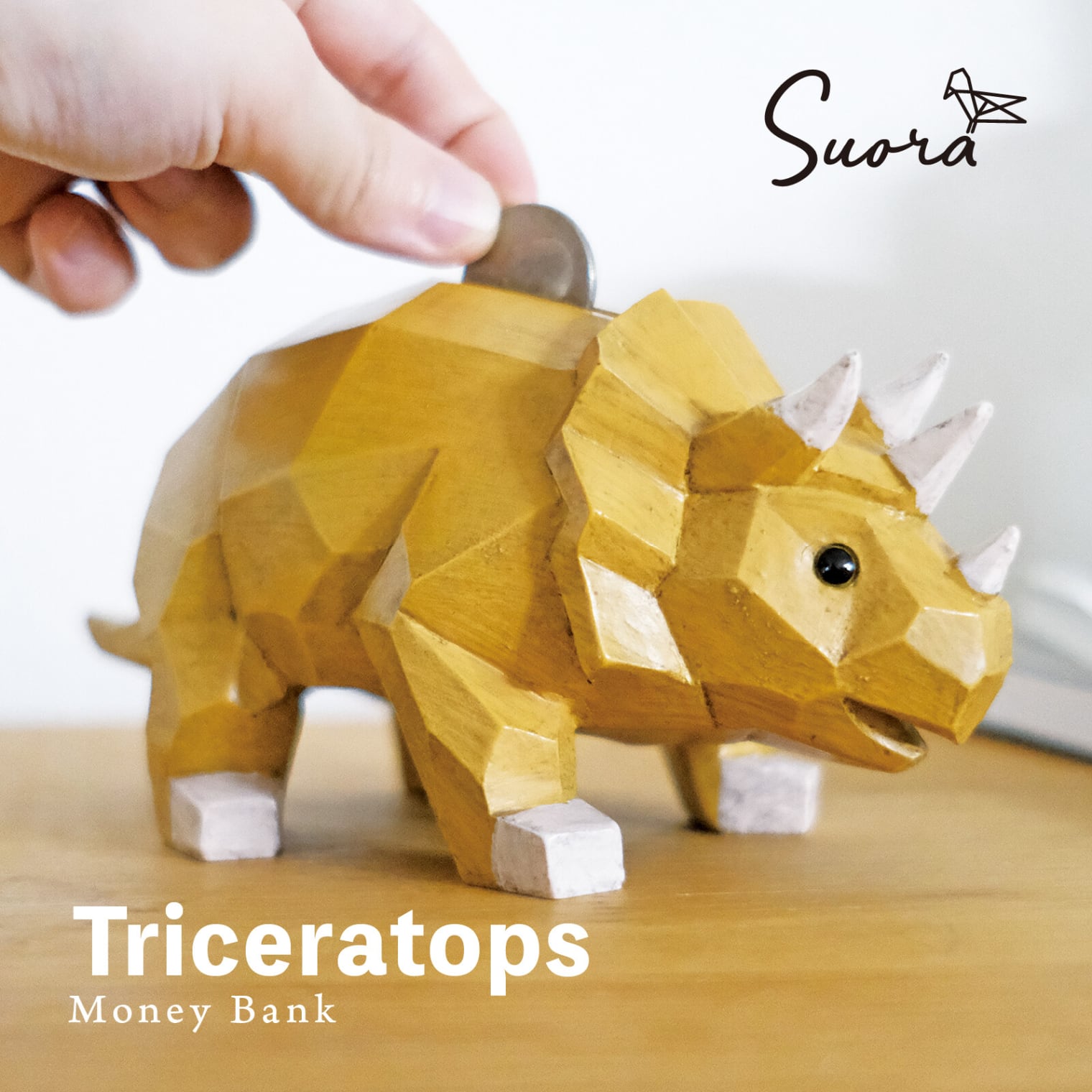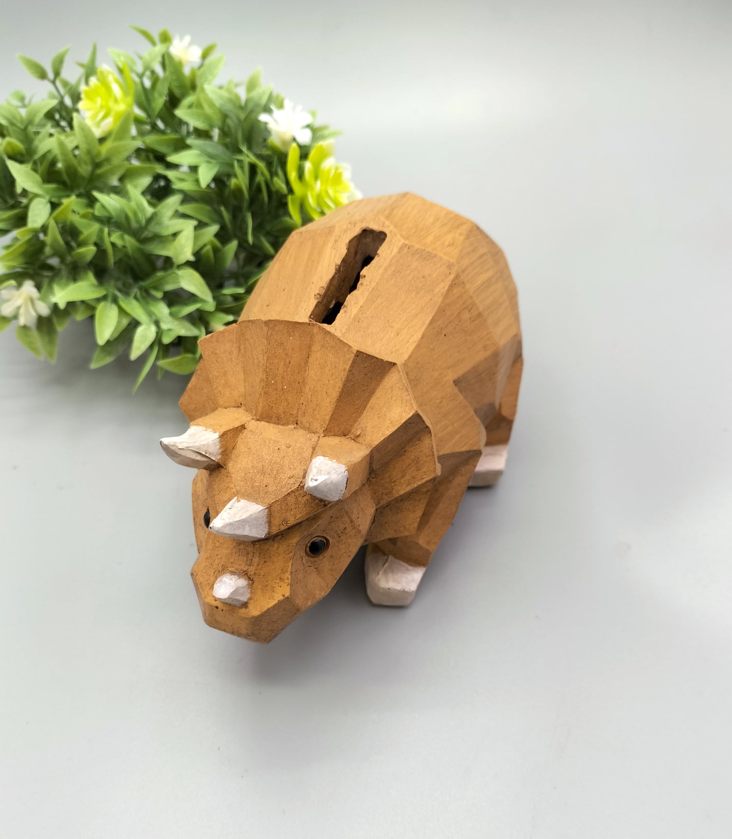 北欧/トリケラトプス/木彫り風/北欧雑貨【貯金箱】