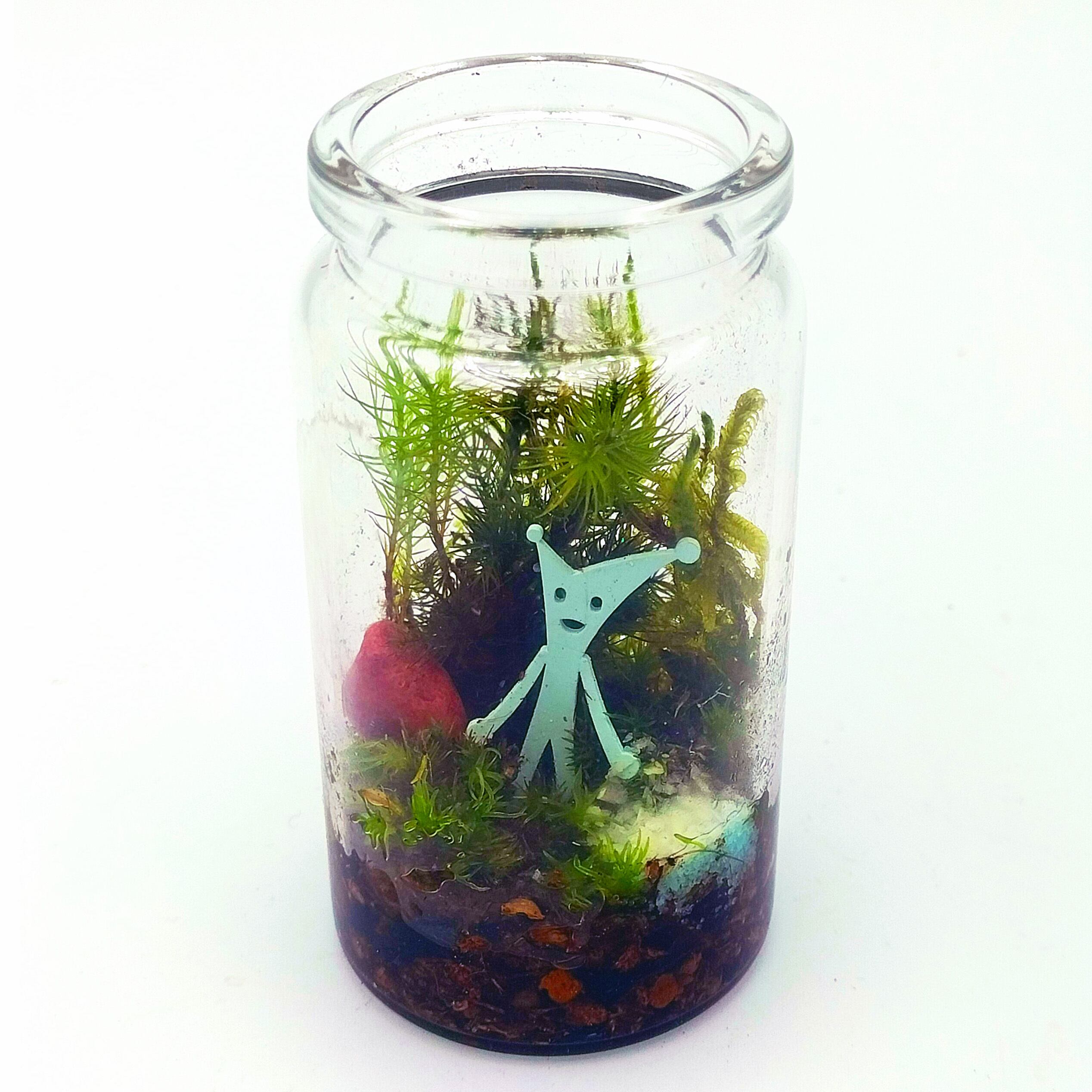 その中には、ふわふわとした緑の苔が広がり、まるで小さな森のよう。