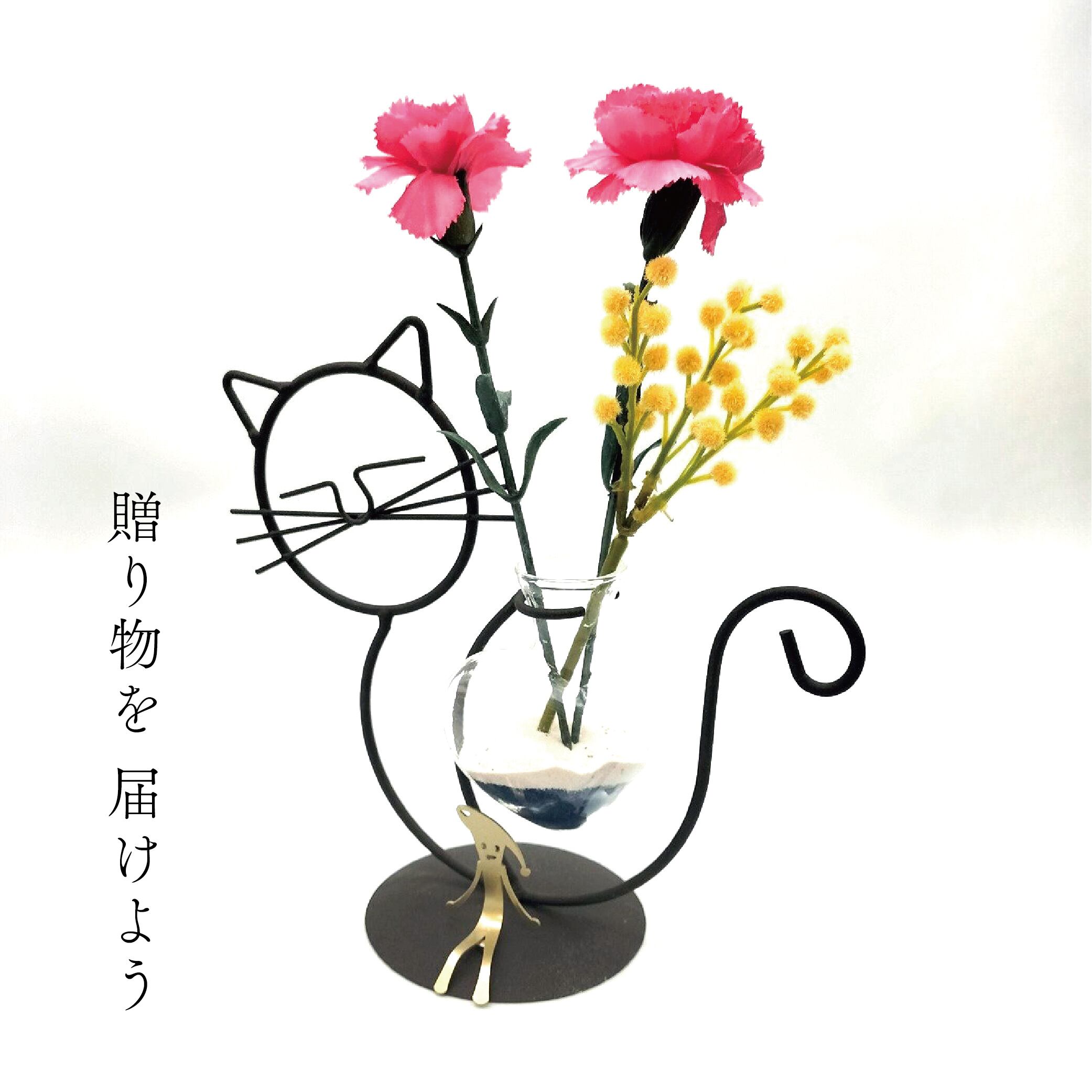 ふたりが選んだのは、ガラスの一輪挿しと、そっと寄り添う黒の猫。