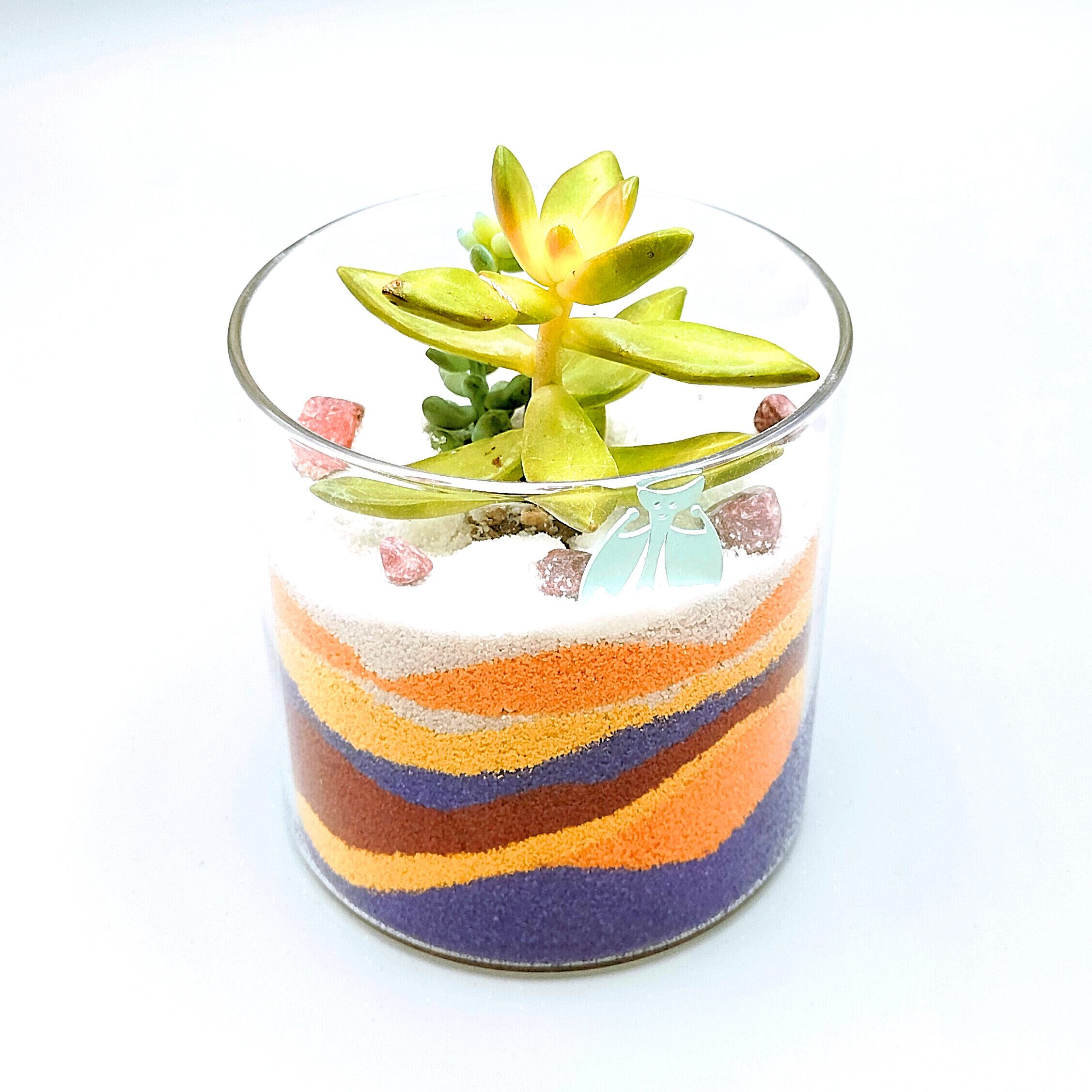 カラフルな砂と観葉植物で、自分だけの癒しの空間を作るひとときを楽しみましょう!