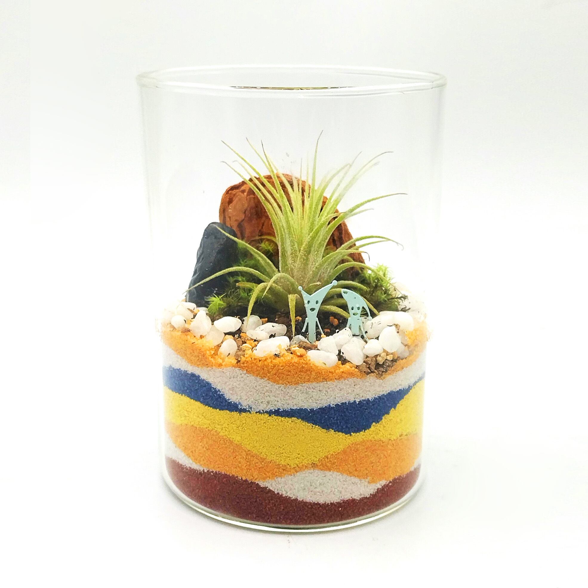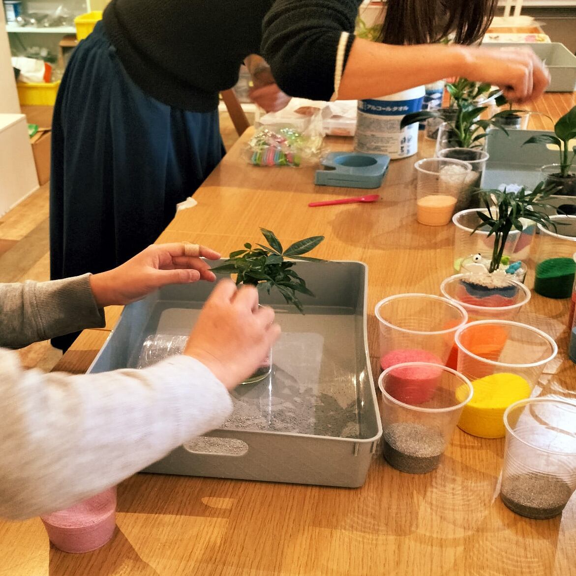 カラフルな砂と観葉植物で、自分だけの癒しの空間を作るひとときを楽しみましょう!