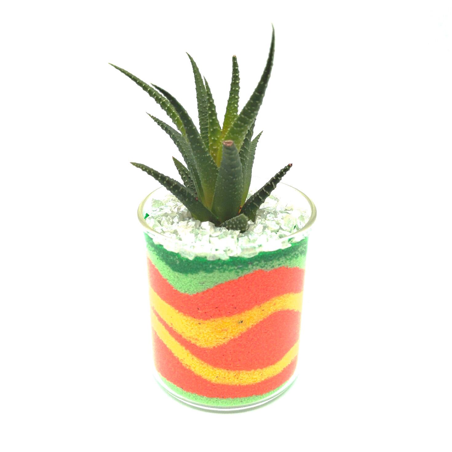 カラフルなサンドアートと、インテリアにぴったりな観葉植物を組み合わせて、