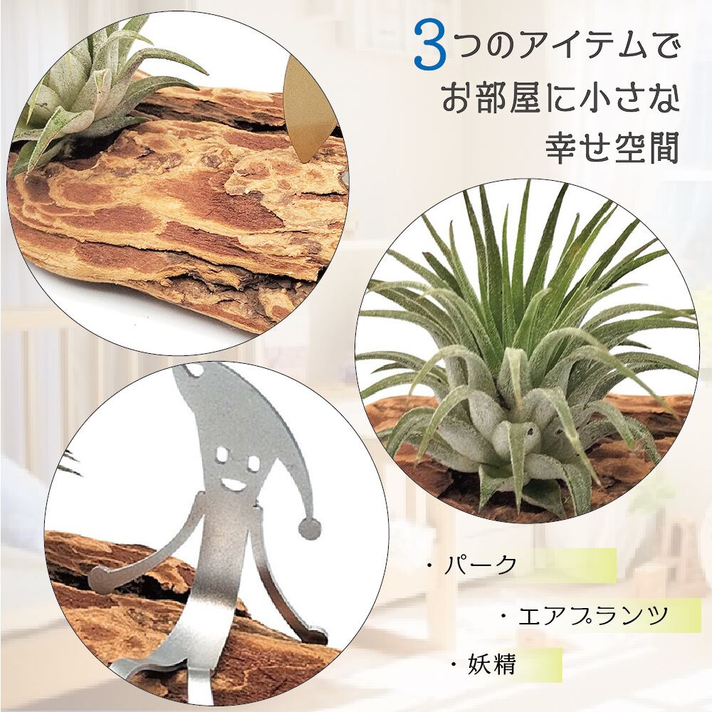 エアープランツとバーク(木の皮)と妖精をセットにしています。
