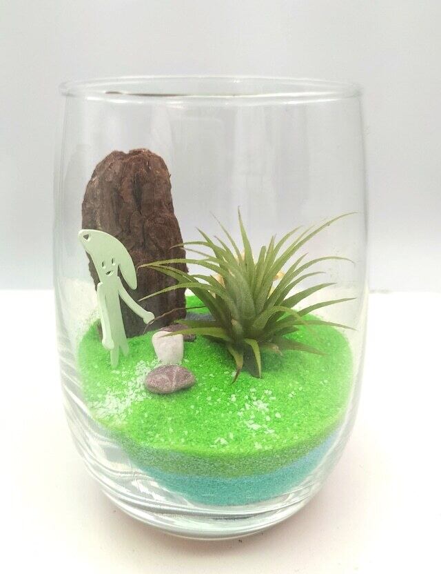 緑の砂は“命の息吹”を、ベージュの層は“大地のぬくもり”を表しています。