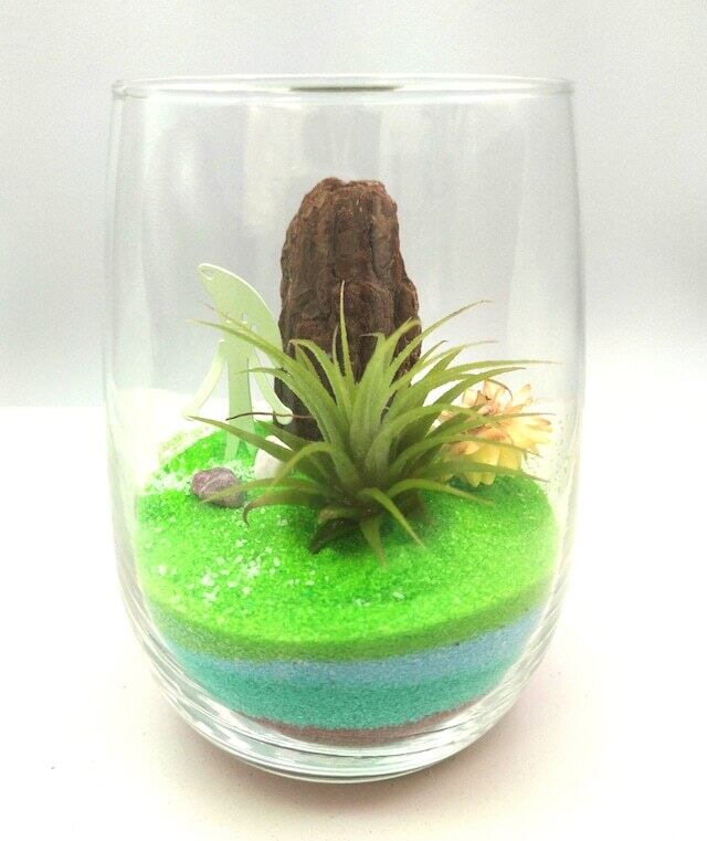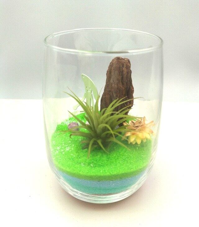 緑の砂は“命の息吹”を、ベージュの層は“大地のぬくもり”を表しています。