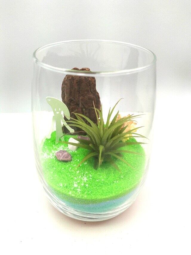 緑の砂は“命の息吹”を、ベージュの層は“大地のぬくもり”を表しています。