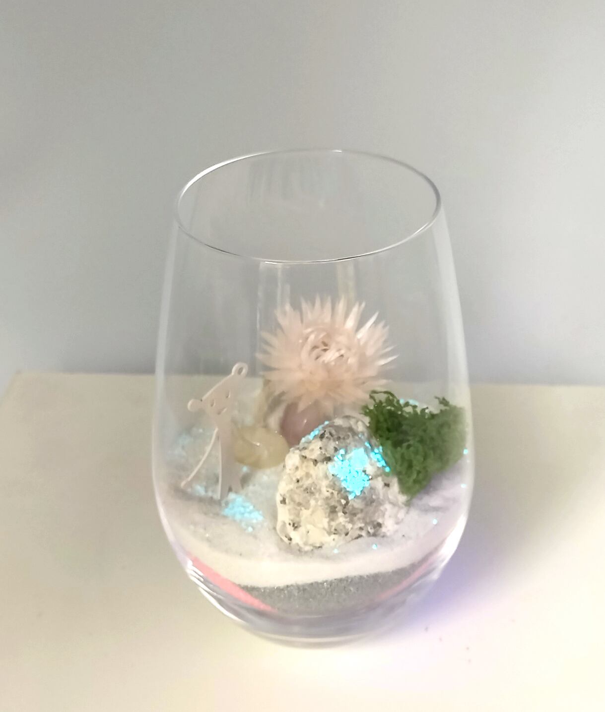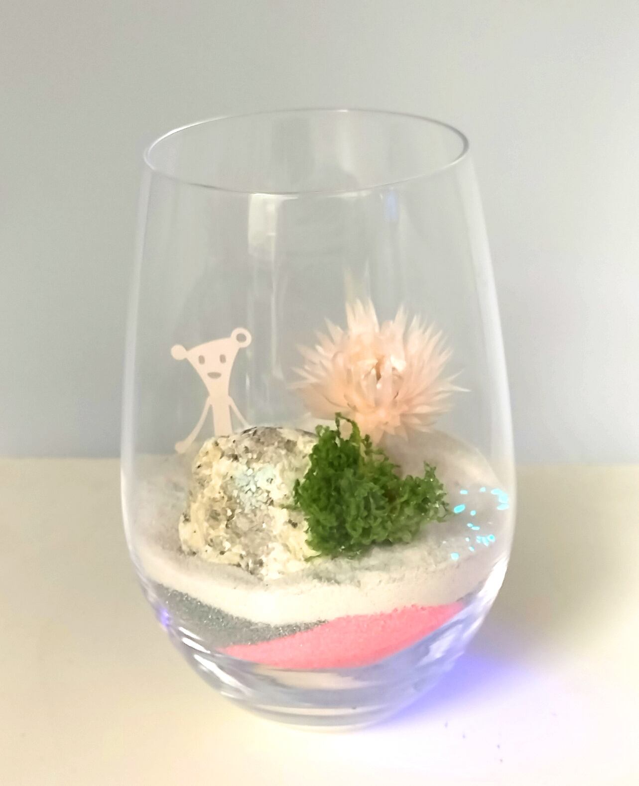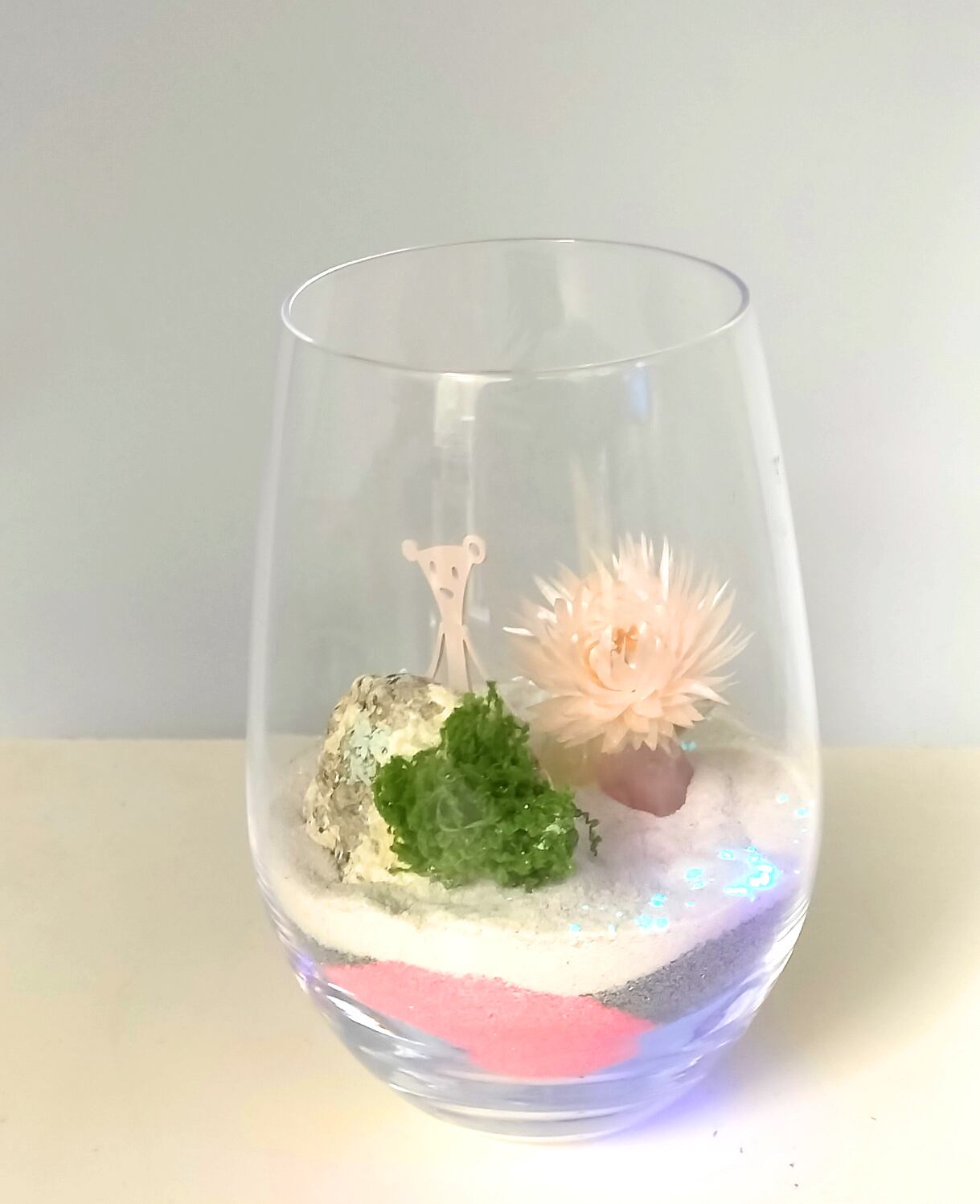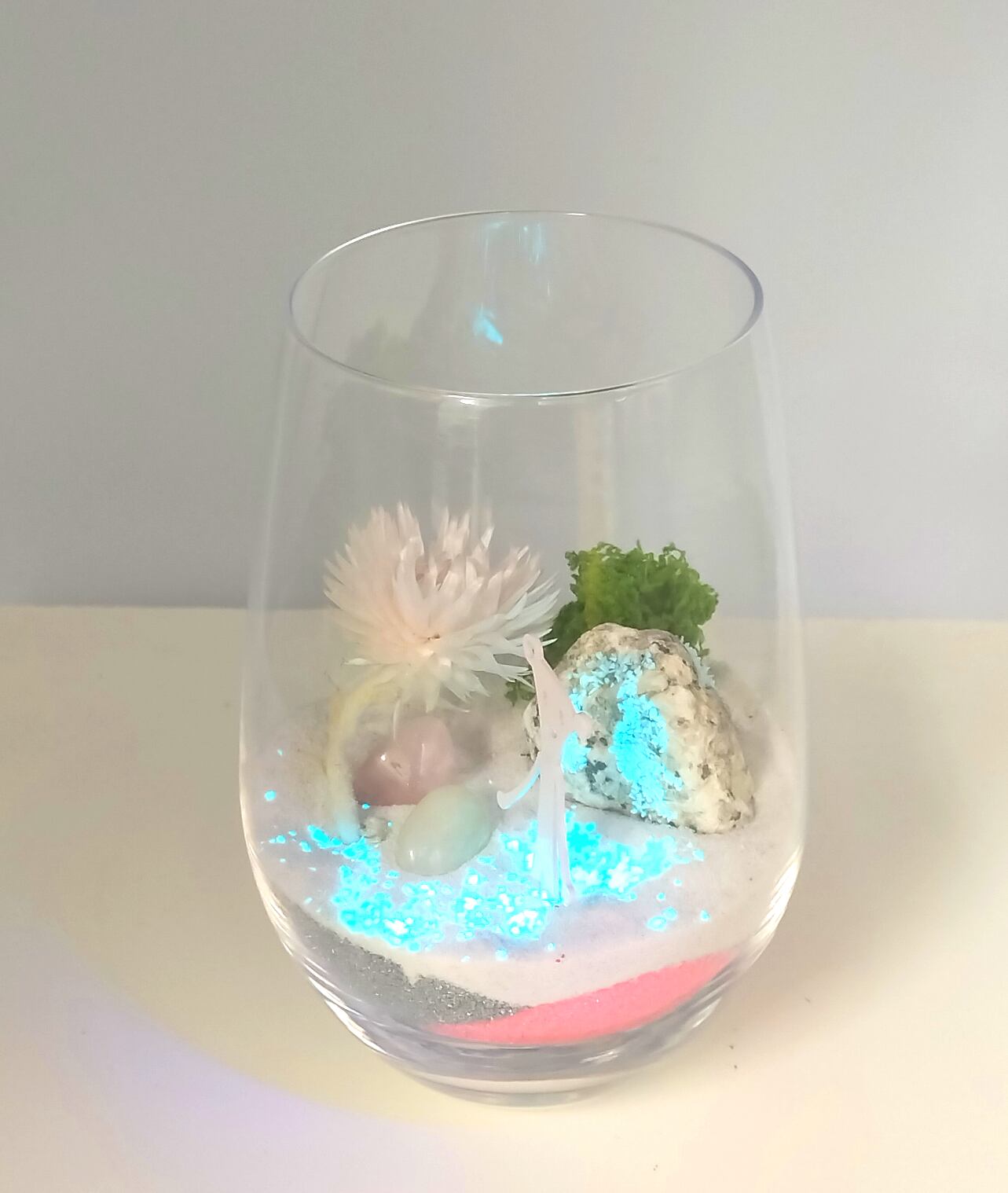 蓄光砂がふんわりと光る “小さな光庭(ひかりのにわ)” をつくるワークショップです。