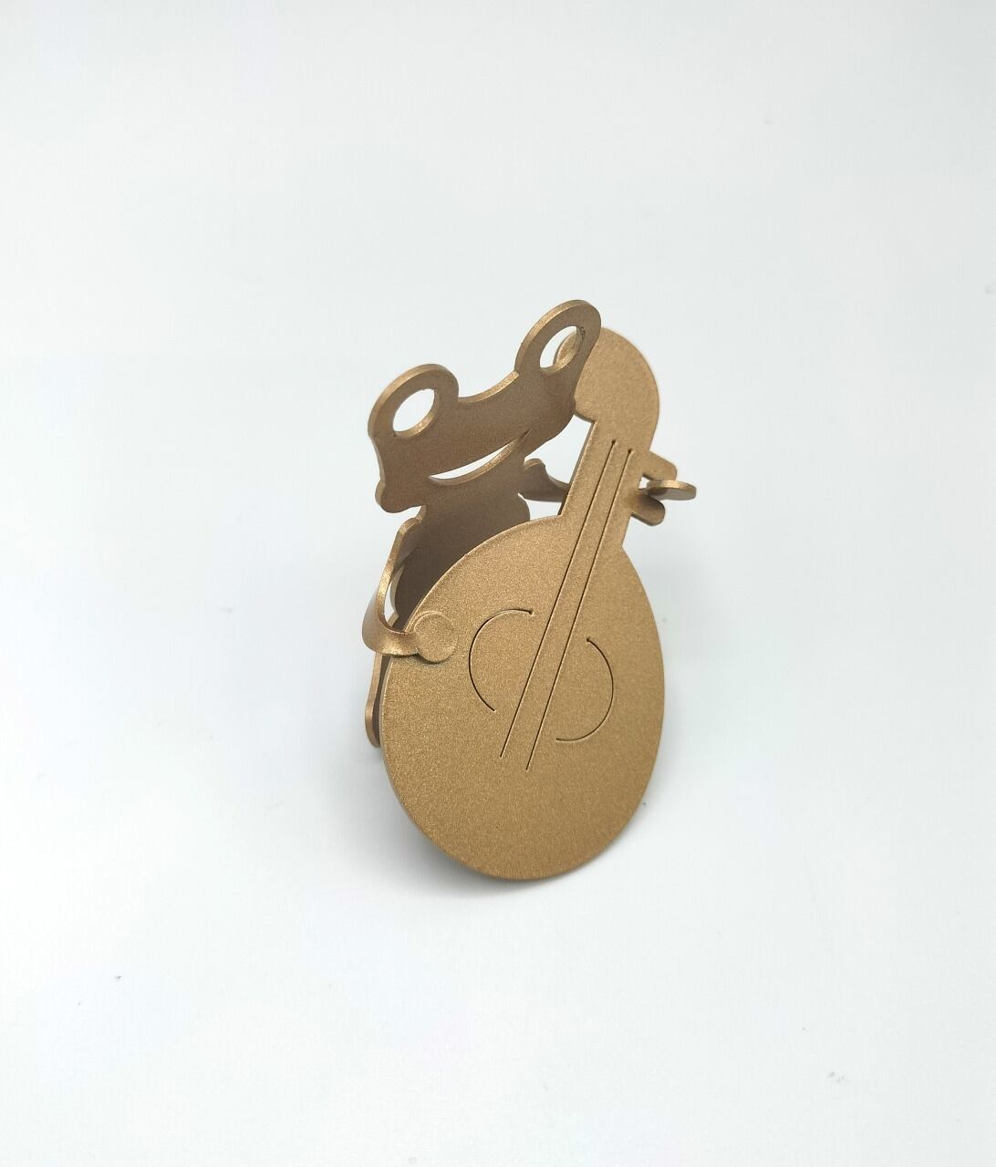 ・カエルのギターリスト:ネイティブな魅力を放つカエルが、ギターを持っている姿で音楽の楽しさを表現。