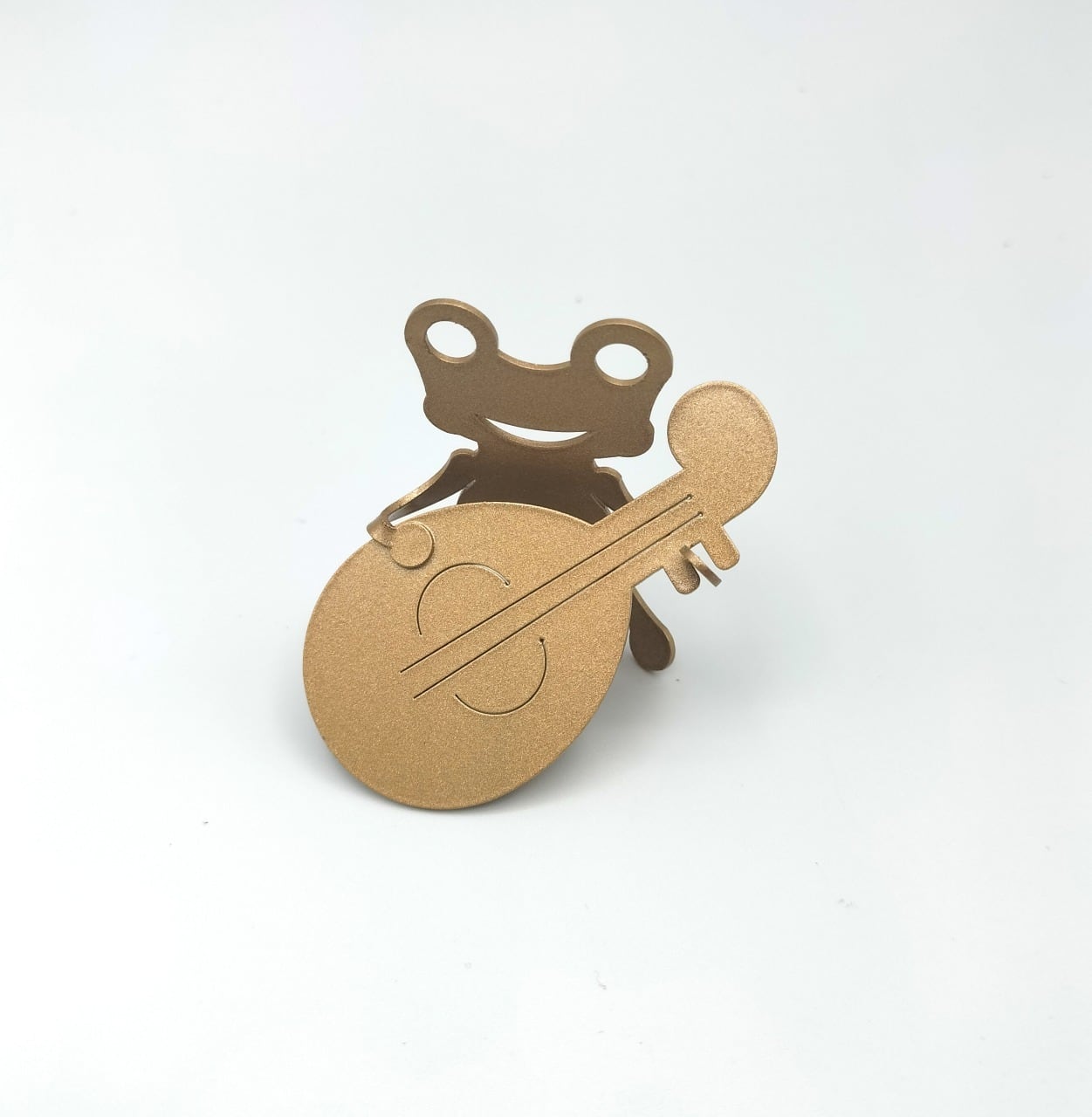 「小さなカエル音楽家 ギターリスト クルル(Kururu)」は、愛らしいカエルがギターを弾く姿を忠実に再現した、ユニークなアートピースです。そのユーモラスな表情と軽やかなフォルムが、見る人に楽しいひとときを提供し、心に癒しをもたらします。クルルは、お部屋のどこにでも置ける可愛らしいサイズ感で、訪れる人々を和ませる存在になるでしょう。
